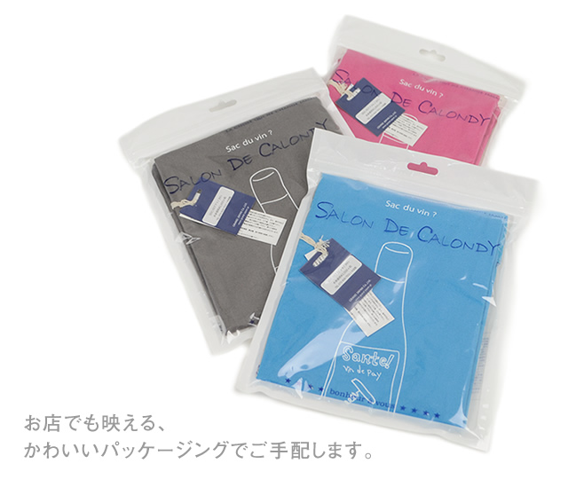 バタール(フランスパン)やワインボトルを入れるのに便利な細長いデザインです。いいサイズ感は提げていても、とってもオシャレ。差し入れやおみやげを持っていくのに使うのもいい感じです。やわらかくて、あたたかみのあるコットン素材、5つのカラーリングをご用意しました。